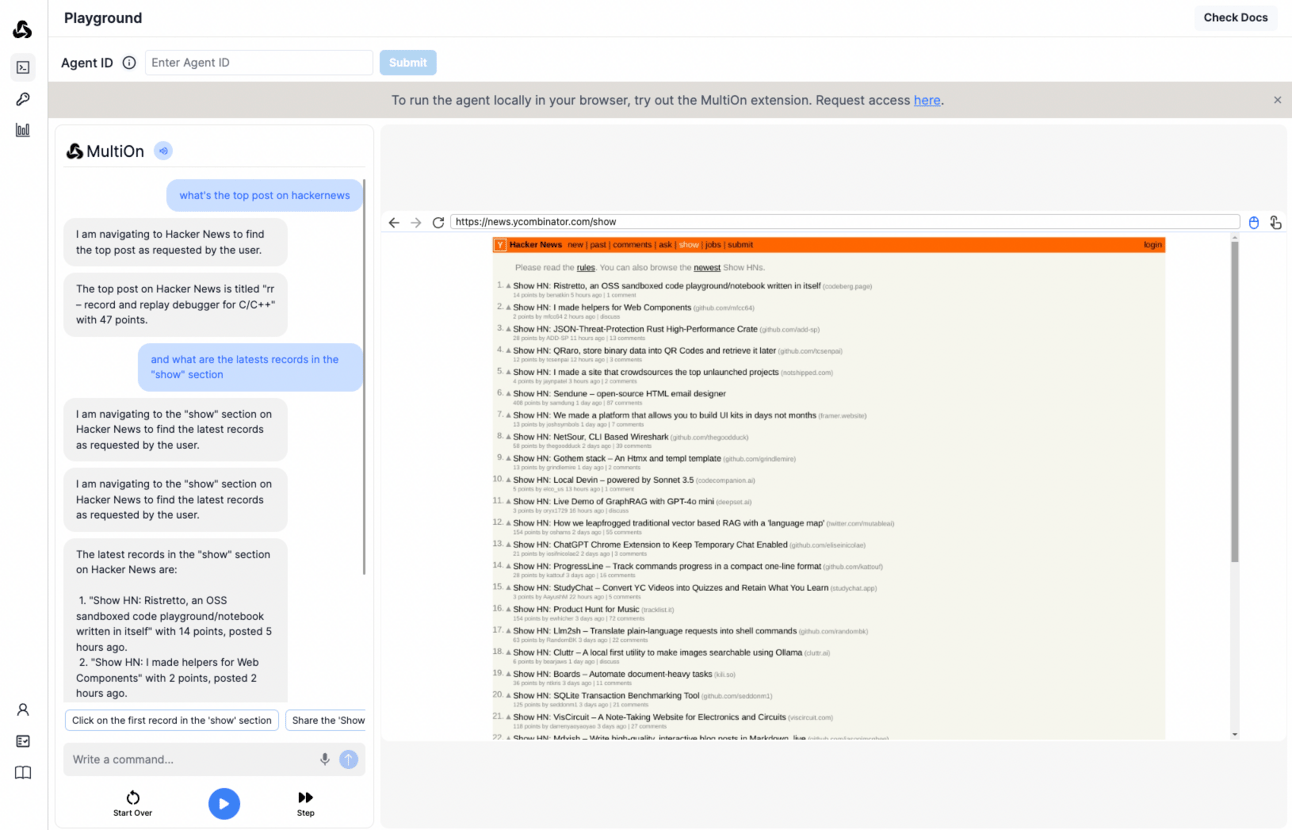 MultiOn - Scrape website with AI, works ok, but it got stuck for searching with some advanced filter for housing (not this screenshot). Interesting concept though.